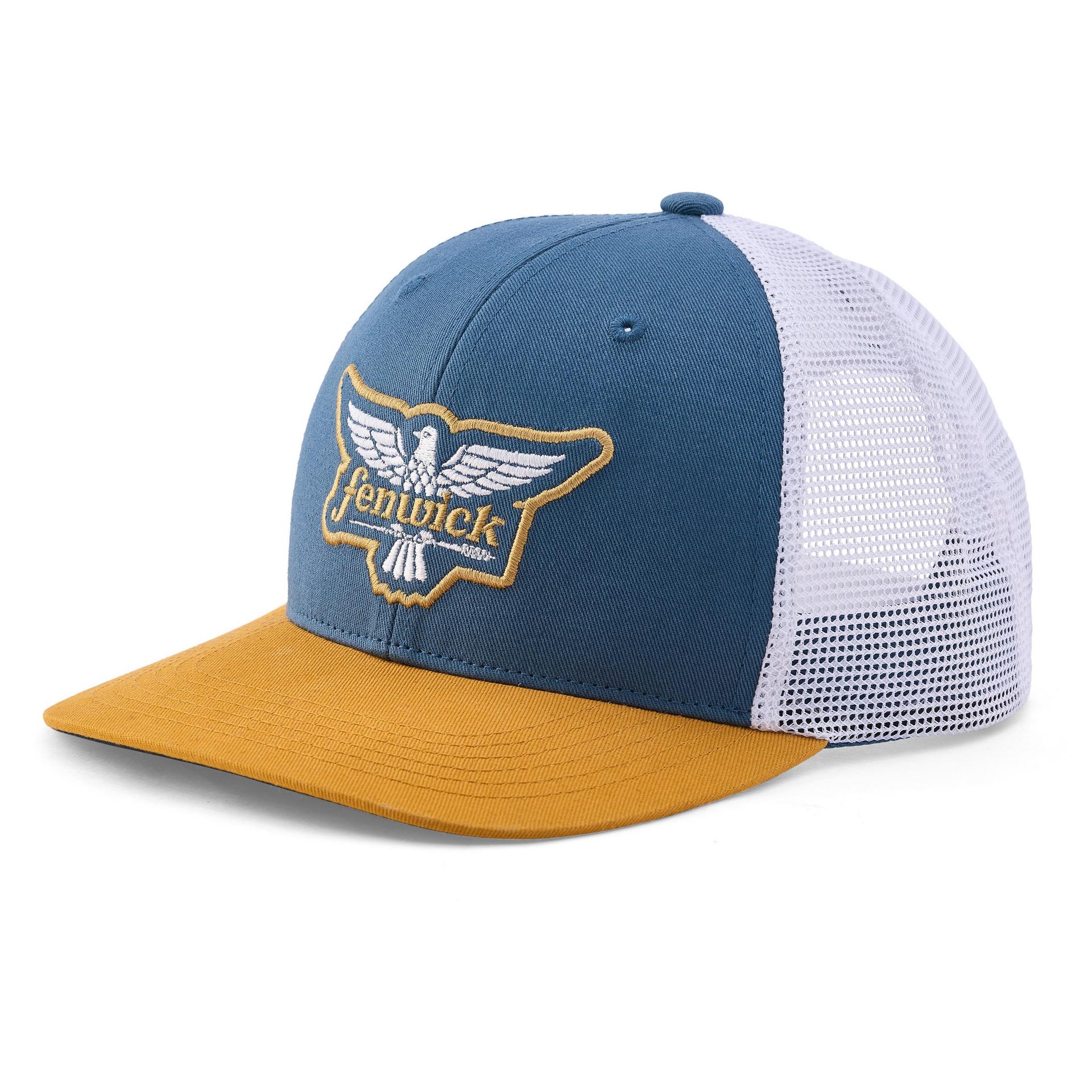 The Fenwick Twill Front Tri-Color Trucker Hat is built from durable twill fabric, breathable mesh panels and a snapback closure for a custom fit. The recycled plastic visor board adds an element of sustainability, while the tonal embroidered logo on the front makes a impact.